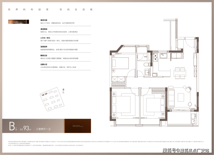 主力户型是建面约93㎡3房,共56套,总价预计460-540万,抢占中间楼层仅需500万左右(含案场优惠)。